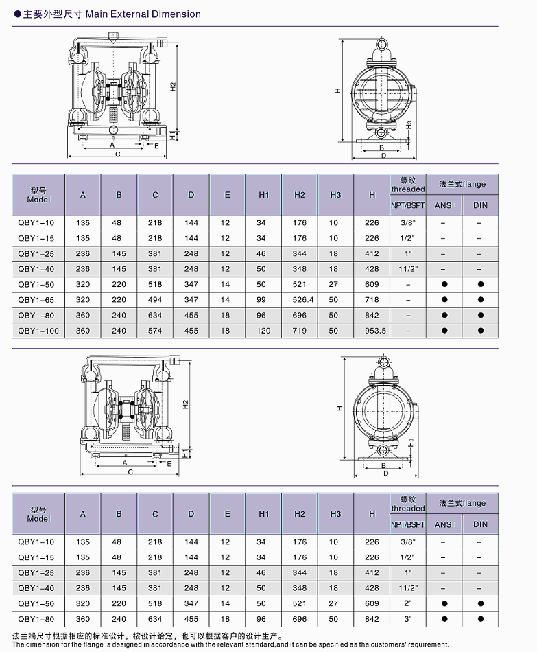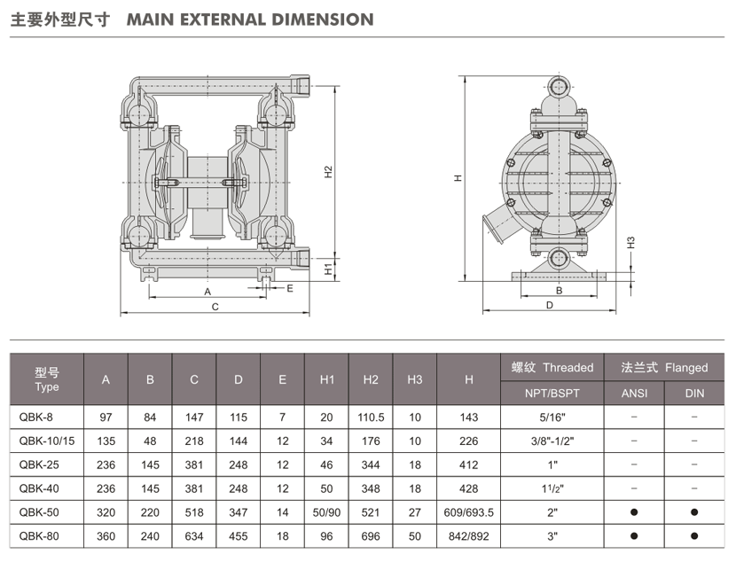 QBY氣動隔膜泵與QBK氣動隔膜泵安裝結構圖
