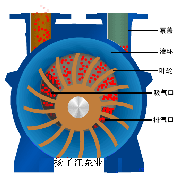 如圖:在泵體中裝有適量的水作為工作液。當(dāng)葉輪按圖中順時(shí)針方向旋轉(zhuǎn)時(shí),水被葉輪拋向四周,由于離心力的作用,水形成了一個(gè)決定于泵腔形狀的近似于等厚度的封閉圓環(huán)。水環(huán)的下部分內(nèi)表面恰好與葉輪輪轂相切,水環(huán)的上部內(nèi)表面剛好與葉片頂端接觸(實(shí)際上葉片在水環(huán)內(nèi)有一定的插入深度)。此時(shí)葉輪輪轂與水環(huán)內(nèi)界面之間形成一個(gè)月牙形空間,而這一空間又被葉輪葉片分成和葉片數(shù)目相等的若干個(gè)小腔。如果以葉輪的下部0°為起點(diǎn),那么葉輪在旋轉(zhuǎn)前180°時(shí)小腔的容積由小變大,且與端面上的吸氣口相通,此時(shí)氣體被吸入,當(dāng)吸氣終了時(shí)小腔則與吸氣口隔絕;當(dāng)葉輪繼續(xù)旋轉(zhuǎn)時(shí),小腔由大變小,使氣體被壓縮;當(dāng)小腔與排氣口相通時(shí),氣體便被排出泵外。