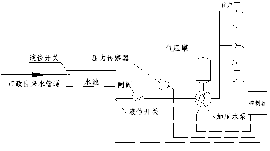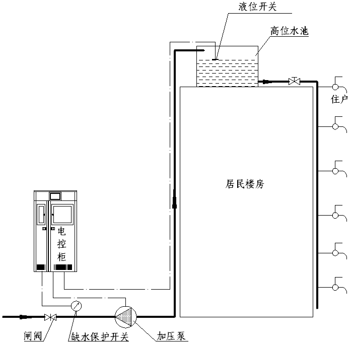 使用方式 ![]() 結(jié)合高位水池使用的浮球式自動增壓泵