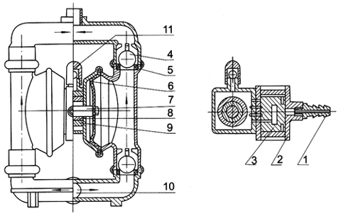【QBY型工程塑料氣動(dòng)隔膜泵】結(jié)構(gòu)圖:
